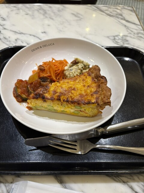 キッシュランチを注文。とうもろこしとサーモンのキッシュ。とうもろこしが甘くて塩気の効いたサーモンとマッチ。