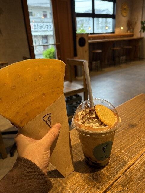 パリパリのクレープが有名と聞いててたので、クレープと飲み物を注文。