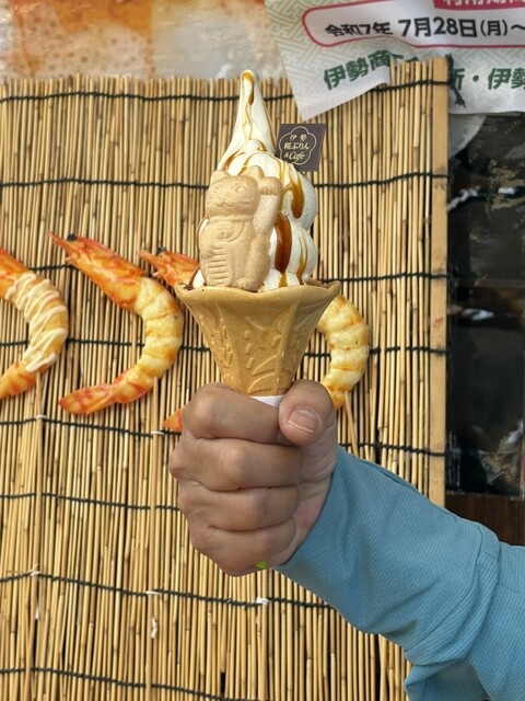 おかげ横丁が招き猫のイベント中だったためか、招き猫の最中をトッピング!
