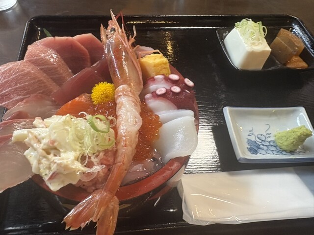 海鮮丼、ねぎとろ丼、かけうどんを注文。