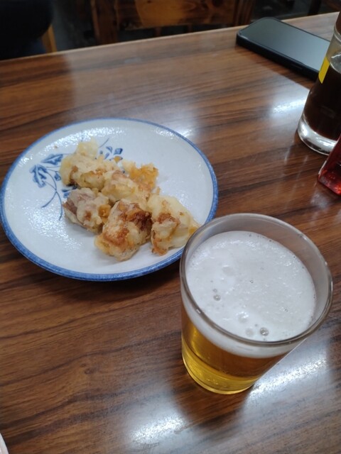 まずはビール、おでんから最後にうどんへ。